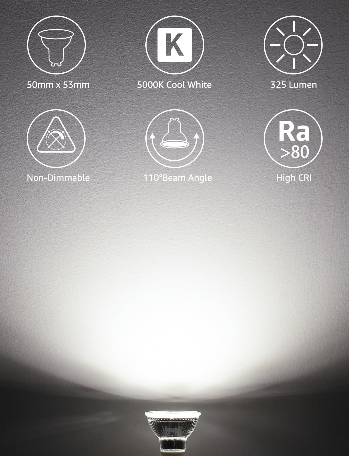 Mit einem Abstrahlwinkel von 110 Grad können dieseGU10-LED-Lampen eineinheitliches Flutlicht abgeben, das für dieallgemeine Beleuchtunggeeignet ist.