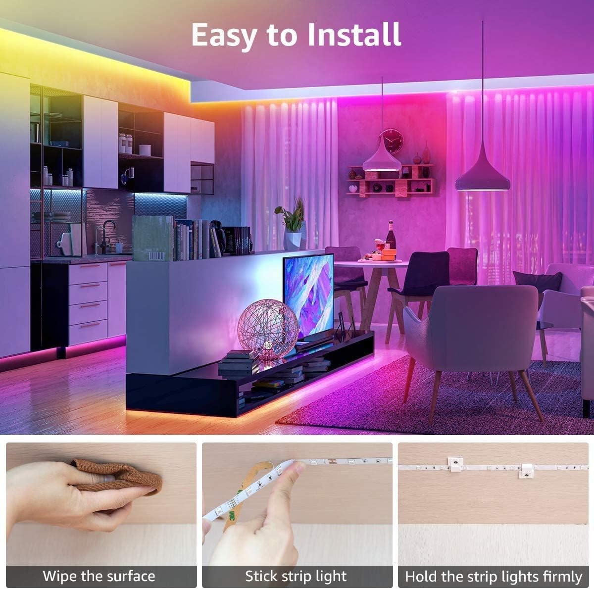 Die LEDs erwärmen sich nur geringfügig. Das Streifenlicht wird in einer platzsparenden Kabelrolle geliefert, sollte aber vor dem Betrieb ausgerollt werden. Mit nur 12V besteht bei einem normalen Gebrauch kein Stromschlagrisiko. Es ist nicht wasserdicht.