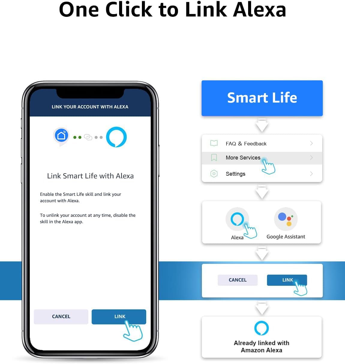 Mit einfachen Sprachbefehlen können Sie den Lichtstreifen (für Alexa und Google Assistant kompatibel) steuern und die Helligkeit(heller oder dunkler) oder Farbe anpassen, um sie Ihrem bevorzugten Modus anzupassen.