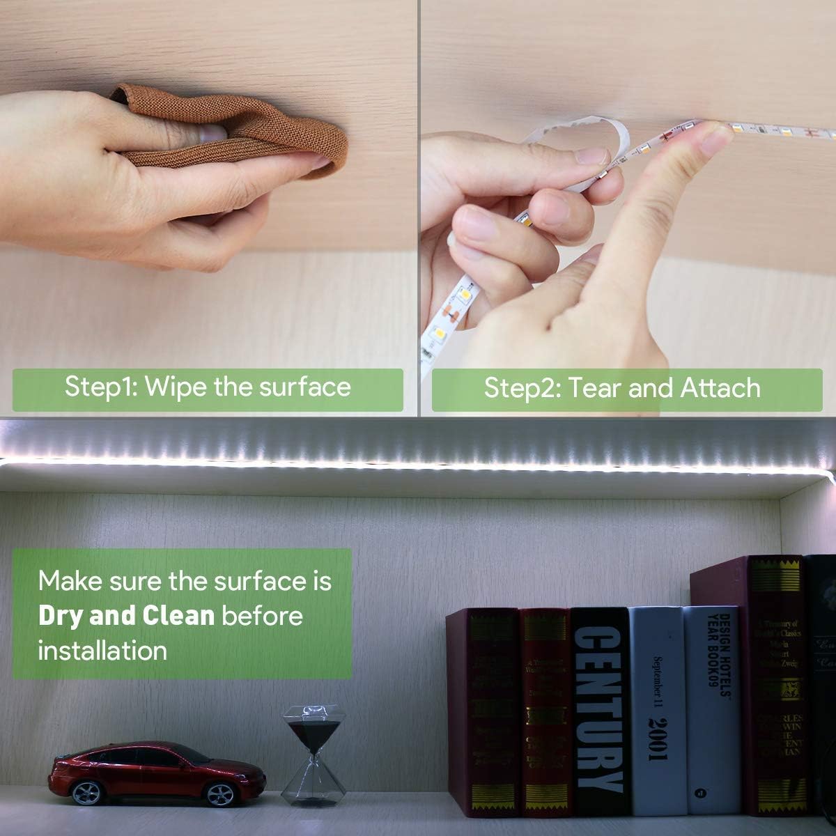Starkes Selbstklebeband hält das Lichtband sicher und fest. Sie können es an den meisten sauberen, trockenen und ebenen festen Oberflächen oder an schwer zugänglichen Stellen anbringen, z glas, sofa, treppe, keramik, bucht, schlitz, plakat, etc.