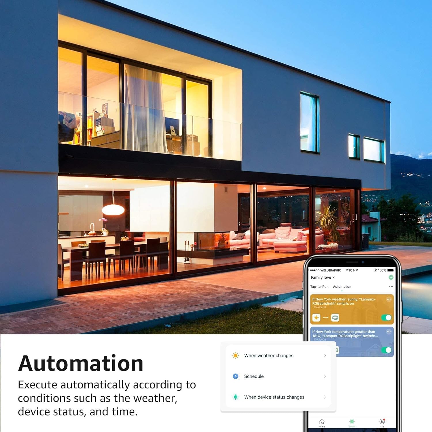 Mit einfachen Sprachbefehlen können Sie den Lichtstreifen (für Alexa und Google Assistant kompatibel) steuern und die Helligkeit(heller oder dunkler) oder Farbe anpassen, um sie Ihrem bevorzugten Modus anzupassen.