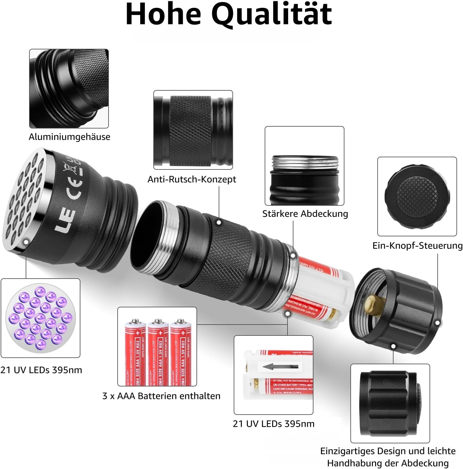 • Zuverlässiges UV-Licht: 21 LEDs mit 395nm.