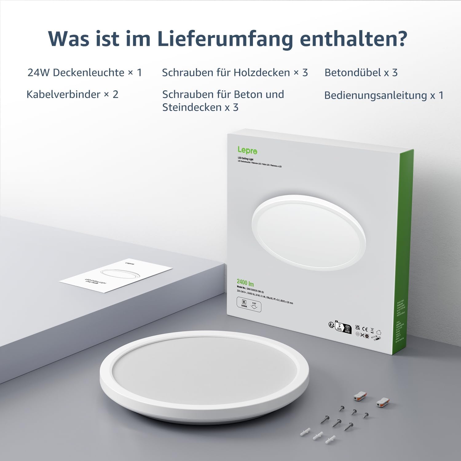 - Super hell und Energie sparend: Lepro 24W LED Deckenlampe entspricht 150W Glühlampe, kann jeden Raum mit ausreichend superhellem Licht und ausgezeichnetem 5000K warmweißem Licht versorgen. 2400LM Deckenleuchte kann 16–20 m² / 172–215 sq ft Raum ausleuchten, ideal für Ihr Badezimmer, Schlafzimmer, Wohnzimmer usw.